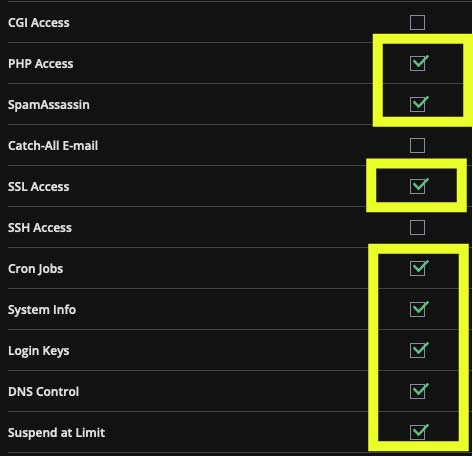 7. Cron Jobs: The user can access Cron Jobs for their account by enabling this setting.
